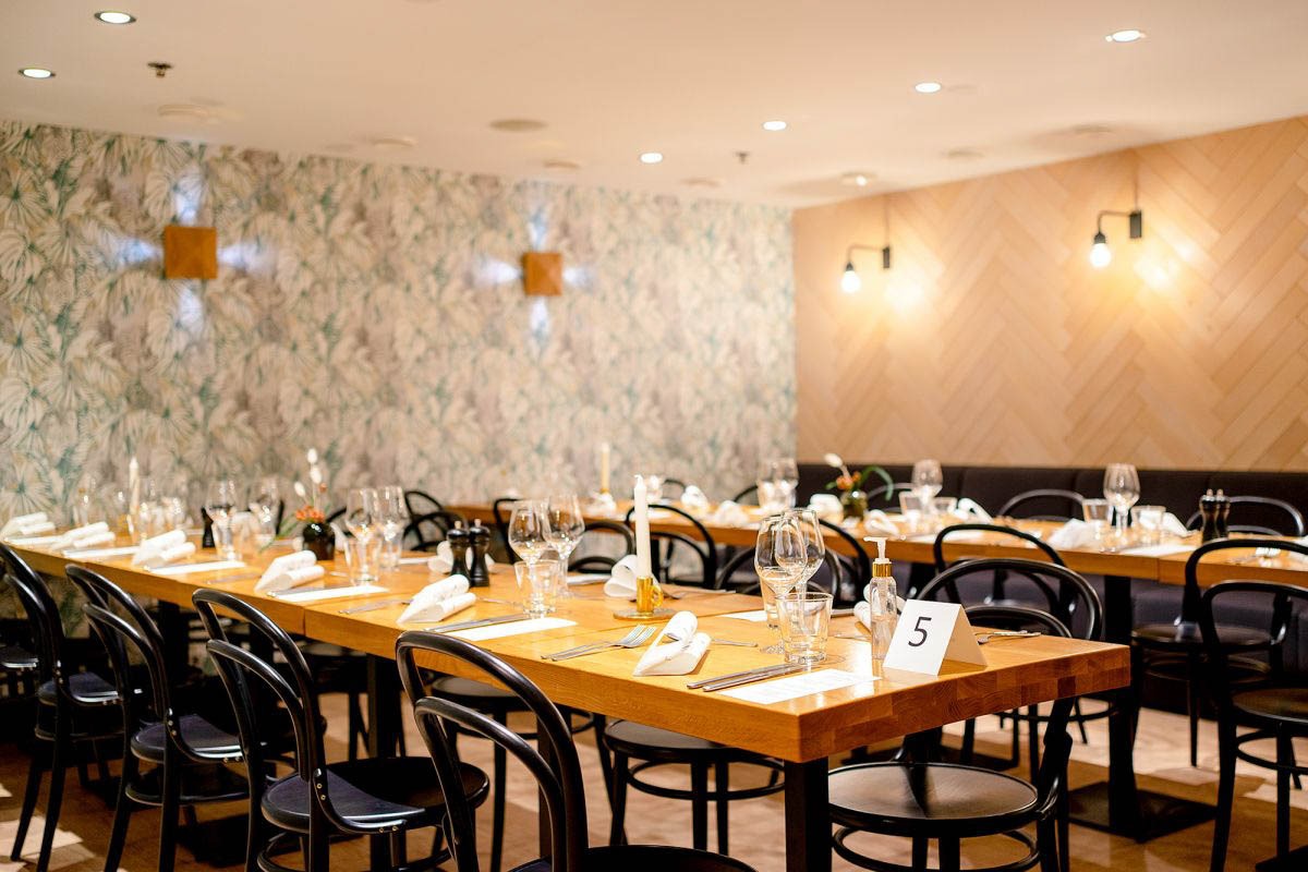 Valoisa ravintolasali on näyttävä myös juhlatilana