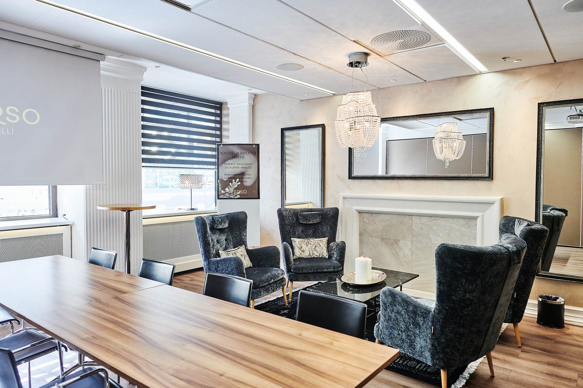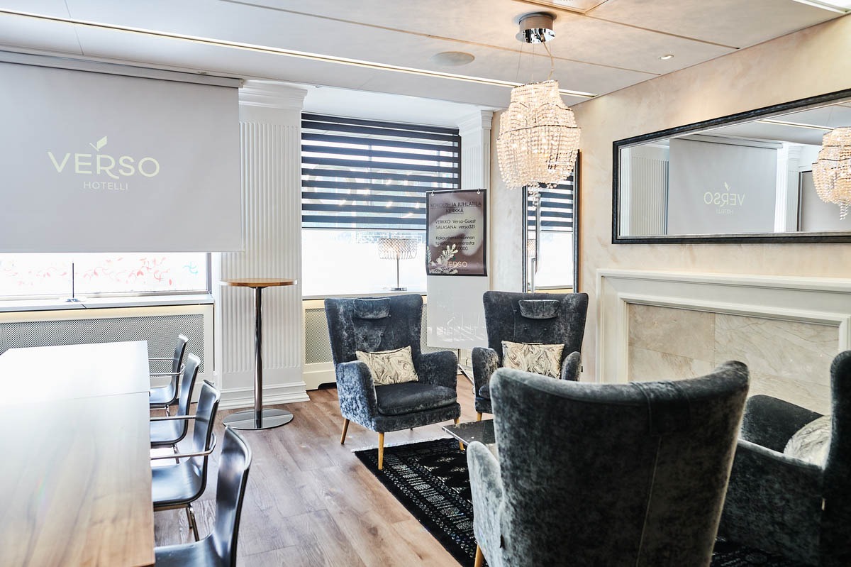 Hotelli Verson toisessa kerroksessa sijaitsevan juhlatila Kerkän pienin kokoustila soveltuu mainiosti pieniin aamiais- ja lounaskokouksiin sekä luovaan työskentelyyn. Upeassa tilassa on neljän hengen sohvaryhmä takan äärellä, kuitenkin aivan omassa rauhassa. Tila on yhdistettävissä Kerkän muihin tiloihin äänieristetyin siirtoseinin! Tilan koko 30m².